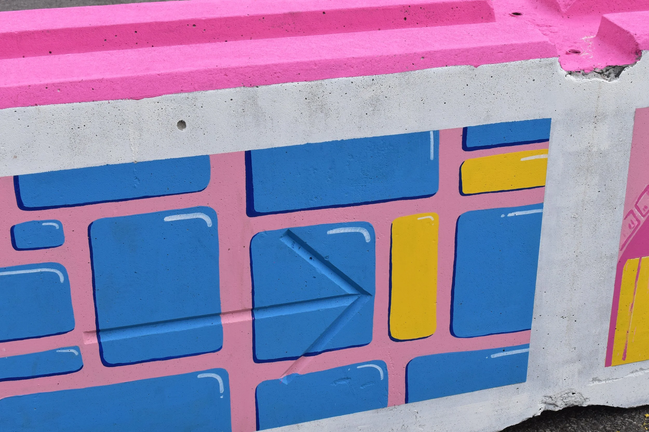 GO! Southampton commissioned me to transform two of seven temporary concrete bollards installed in Mayflower Park. The initiative aimed to brighten up the space and support the council’s efforts to reduce car traffic and encourage pedestrianisation.